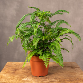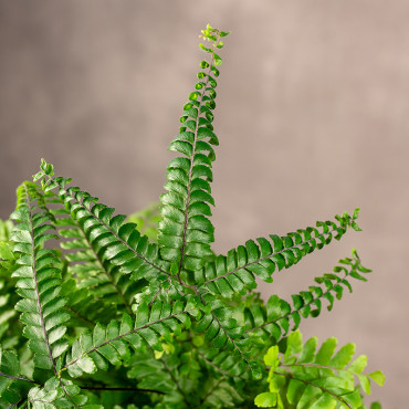 Adiantum 'Roseum', znana również jako Adiantum capillus-veneris 'Roseum', to delikatna paproć o subtelnych, różowo-miedzianych młodych liściach, które z czasem zielenieją. Najlepiej rośnie w jasnym, ale rozproszonym świetle, wymaga stale wilgotnego podłoża. Idealna do pomieszczeń o podwyższonej wilgotności powietrza.