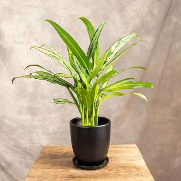 Aglaonema 'Cutlass' to odmiana o lancetowatych liściach o cudownym zielono - srebrnym ubarwieniu. Ojczyzną Aglonemy są Indie i okoliczne wyspy, gdzie dorasta do 2 m. W naszych warunkach tworzy najwyżej półmetrowej wysokości pnie i przy odrobinie szczęścia zakwita. Jej kwiaty kształtem przypominają kwiaty kalii, ale są małe i niepozorne. Najbardziej znanym jest gatunek Aglaonema commutatum. Łatwo ją uprawiać, intensywnie oczyszcza powietrze, należy jednak pamiętać, że piękne liście zawierają toksyczny sok.