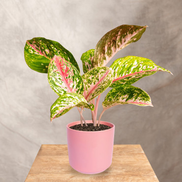 Aglaonema 'Dark Pink Star' to odmiana o liściach w kolorze zielonym z różowymi plamami. Jest to roślina doniczkowa, która w naturalnych warunkach występuje w lasach tropikalnych Azji. Nazwa Aglaonema pochodzi z języka greckiego, gdzie "aglos" oznacza błyszczący, a "nema" - nić, co odnosi się do błyszczących pręcików kwiatowych. Roślina ta jest ceniona nie tylko ze względu na dekoracyjne liście, ale także ze względu na swoje właściwości oczyszczające powietrze. Aglaonema 'Dark Pink Star' doskonale sprawdza się w mieszkaniach i biurach,gdzie poprawia jakość powietrza.