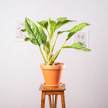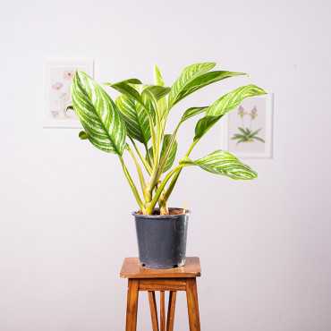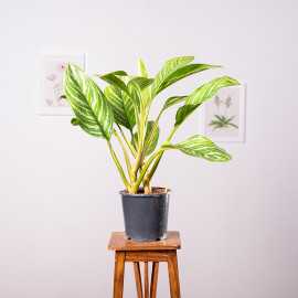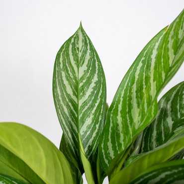 Aglaonema 'Stripes' (Aglonema) to piękna odmiana algaonemy o liściach poprzecinanych regularnymi srebrzystymi pasami. Jedna z większych odmian, dorastająca nawet do 80 cm, idealna do nasadzeń w dużych przestrzeniach.