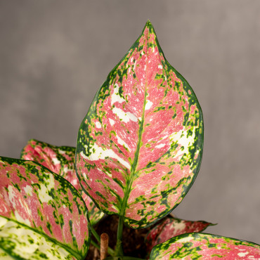 Aglaonema 'Jazzy Red' to wyrazista, efektowna odmiana o intensywnie wybarwionych liściach, w których czerwień, róż i głęboka zieleń tworzą niezwykle dekoracyjne, malowane wzory. Kolorystyka rośliny zmienia się w zależności od światła, dzięki czemu każda sztuka prezentuje się nieco inaczej i przyciąga wzrok żywymi, energetycznymi barwami.