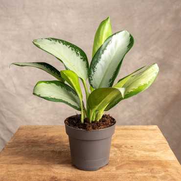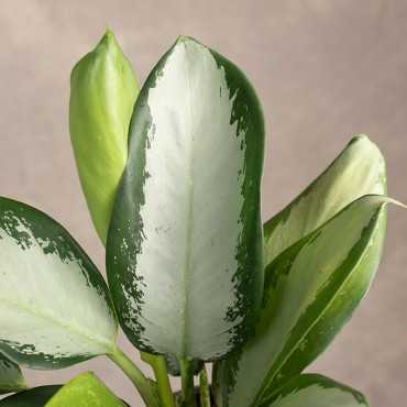 Aglonema 'Silver Blue' to tropikalna roślina należąca do rodziny obrazkowatych. Ma średniej wielkości, lancetowate liście w kolorze srebrzystym z ciemnozielonym obrzeżeniem i intensywnie limonkowym, wyraźnie zaznaczonym nerwem głównym. Jest bardzo wdzięczna i łatwą w uprawie rośliną.