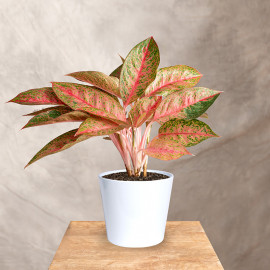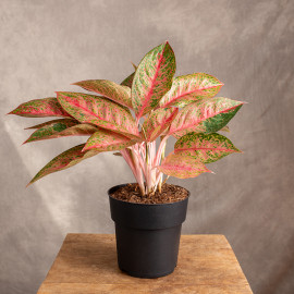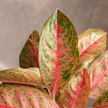 Aglaonema 'Tango Pink' – urocza odmiana aglaonemy, która zachwyca intensywnymi różowymi akcentami na tle ciemnozielonych liści. Jej liście mają subtelną, ale bardzo dekoracyjną kolorystykę, gdzie różowy odcień pięknie kontrastuje z zielonymi plamkami, tworząc niezwykle efektowny i tropikalny wygląd.