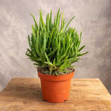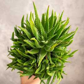 Aloes 'Verini' to wyjątkowa odmiana popularnego sukulentu znanego ze swoich licznych właściwości zdrowotnych i dekoracyjnych. Roślina ta charakteryzuje się mięsistymi, zielonymi liśćmi z delikatnym, jasnozielonym odcieniem oraz subtelnymi białymi plamkami na powierzchni i wypustkami. Aloe vera 'Verini' jest nie tylko praktycznym, ale również estetycznym dodatkiem do wnętrza.