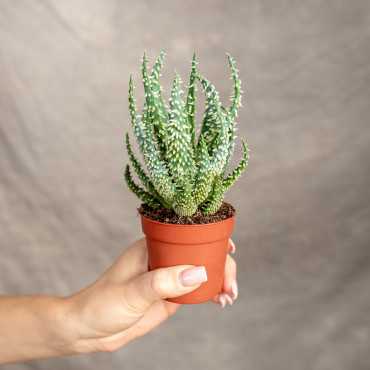 Aloes to roślina pochodząca z afrykańskich rejonów. Dzięki czemu jest niezwykle odporna na niedostatek wody i palące słońce. Aloes niski tworzy gęste rozety liści, które pokryte są drobnymi, ostro zakończonymi wypustkami. W okresie kwitnienia wypuszcza drobne, pomarańczowo-czerwone kwiaty. Osiąga maksymalnie do 20-30 cm wysokości.