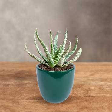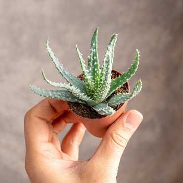 Aloes to roślina pochodząca z afrykańskich rejonów. Dzięki czemu jest niezwykle odporna na niedostatek wody i palące słońce. Aloes niski tworzy gęste rozety liści, które pokryte są drobnymi, ostro zakończonymi wypustkami. W okresie kwitnienia wypuszcza drobne, pomarańczowo-czerwone kwiaty. Osiąga maksymalnie do 20-30 cm wysokości.