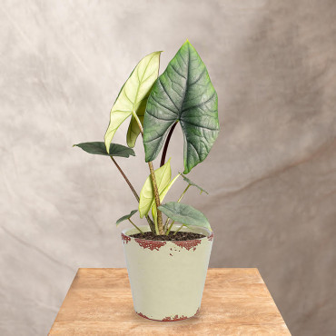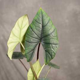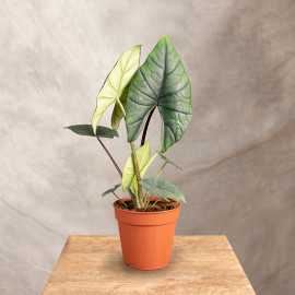 Alokazja 'Bisma Silver' to niezwykła odmiana, która zachwyca wyjątkowym, srebrzystoszarym odcieniem liści. Jej duże, aksamitne blaszki liściowe mają wyraziste unerwienie, co nadaje roślinie subtelny, a jednocześnie egzotyczny wygląd. Dzięki kompaktowemu pokrojowi i unikalnej barwie jest idealnym wyborem dla miłośników rzadkich roślin doniczkowych.