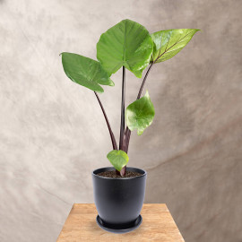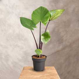 Alokazja 'Black Cobra' to niezwykła roślina doniczkowa, która zachwyca unikalnym wyglądem i tropikalnym charakterem. Jej długie, smukłe ogonki liściowe mają głęboki, niemal czarny odcień. Wyraziste unerwienie na liściach i lekko falowane brzegi dodają jej dynamicznego, drapieżnego charakteru, idealnie pasującego do jej nazwy.