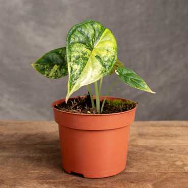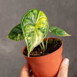 Alokazja 'Dragon Scale' Variegata to wyjątkowa roślina, która zachwyca swoją egzotyczną urodą i unikalnym wzorem na liściach. Jej mięsiste, sercowate liście w zielonym kolorze przeplatają się z jaśniejszymi, kremowymi plamkami, tworząc efektowny kontrast. Dzięki temu każda roślina jest niepowtarzalna i z pewnością wzbogaci kolekcję roślin.