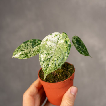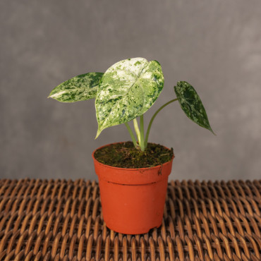 Alokazja 'Dragon Scale' Variegata to wyjątkowa roślina, która zachwyca swoją egzotyczną urodą i unikalnym wzorem na liściach. Jej mięsiste, sercowate liście w zielonym kolorze przeplatają się z jaśniejszymi, kremowymi plamkami, tworząc efektowny kontrast. Dzięki temu każda roślina jest niepowtarzalna i z pewnością wzbogaci kolekcję roślin.