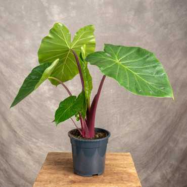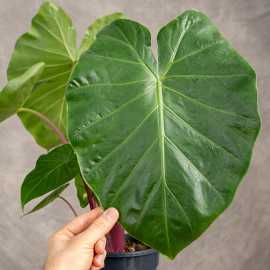Alokazja 'Imperial Red' to niezwykle atrakcyjna roślina doniczkowa, należąca do rodziny obrazkowatych (Araceae). Znana ze swoich imponujących liści i egzotycznego wyglądu. Pochodzi z tropikalnych rejonów Azji. Ma duże, sercowate liście w kolorze soczystej zieleni wzniesione na mięsistych łodygach, które przybierają fioletowo- czerwony odcień, zwłaszcza u młodych liści.