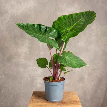 Alokazja 'Imperial Red' to niezwykle atrakcyjna roślina doniczkowa, należąca do rodziny obrazkowatych (Araceae). Znana ze swoich imponujących liści i egzotycznego wyglądu. Pochodzi z tropikalnych rejonów Azji. Ma duże, sercowate liście w kolorze soczystej zieleni wzniesione na mięsistych łodygach, które przybierają fioletowo- czerwony odcień, zwłaszcza u młodych liści.