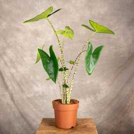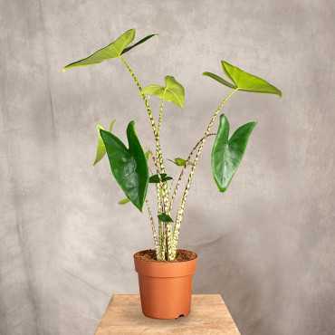 Alokazja zebrina - jej nazwa pochodzi od charakterystycznych łodyg przypominających umaszczenie zebry. Roślina słynie z ozdobnych liści o oryginalnym kształcie i rysunku. Alokazja pochodzi z rejonów tropikalnych i w naszym corocznym plebiscycie została ogłoszona rośliną roku 2019.