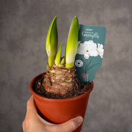 Hippeastrum 'Akiko' to efektowna, wielkokwiatowa odmiana amarylisa, ceniona za spektakularne, pełne kwiaty w delikatnym, białym kolorze.