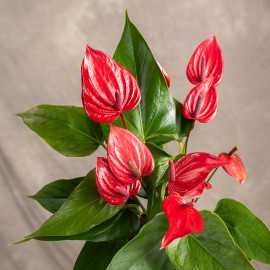Anturium pochodzi z tropikalnych lasów Ameryki Środkowej i jest doskonałym przykładem rośliny pokojowej przeniesionej z tropików i zaadoptowanej dzięki systematycznej uprawie. Została odkryta w połowie ubiegłego wieku. Liście ma owalne i spiczasto zakończone, wyrasta z nich podłużna kolba. W odpowiednich anturium warunkach może kwitnąć przez cały rok.