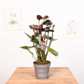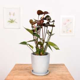 Anturium pochodzi z tropikalnych lasów Ameryki Środkowej i jest doskonałym przykładem rośliny pokojowej przeniesionej z tropików i zaadoptowanej dzięki systematycznej uprawie. Została odkryta w połowie ubiegłego wieku. Liście ma owalne i spiczasto zakończone, wyrasta z nich podłużna kolba. W odpowiednich anturium warunkach może kwitnąć przez cały rok.