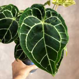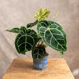 Anturium crystallinum to gatunek o dużych, aksamitnych liściach w kształcie serca. Liście mają zieloną barwę z ozdobnymi, srebrnymi żyłkami. Roślina ta pochodzi z Ameryki Południowej i Środkowej, gdzie roślinie w warunkach tropikalnych. Anturium crystallinum jest bardzo podobne do znanego Anturium clarinervium, które z kolei ma krótsze, szersze i ciemnozielone liście.