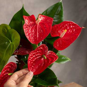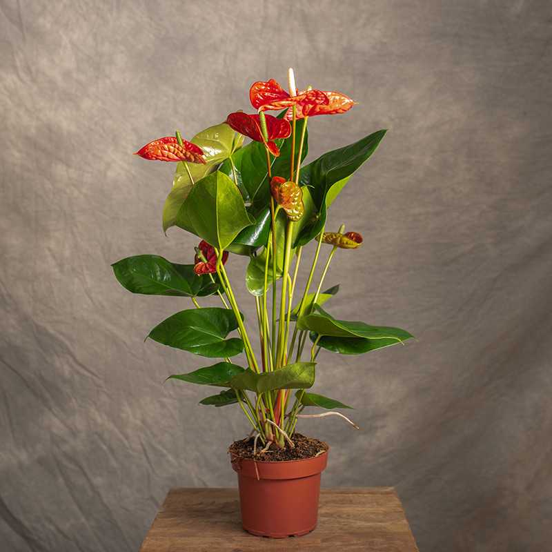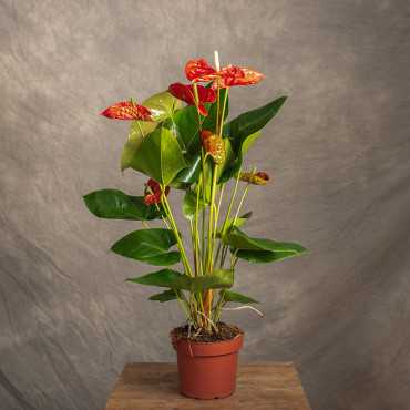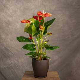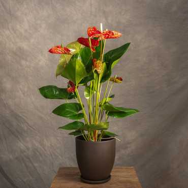 Anturium pochodzi z tropikalnych lasów Ameryki Środkowej i jest doskonałym przykładem rośliny pokojowej przeniesionej z tropików i zaadoptowanej dzięki systematycznej uprawie. Została odkryta w połowie ubiegłego wieku. Liście ma owalne i spiczasto zakończone, wyrasta z nich podłużna kolba. W odpowiednich anturium warunkach może kwitnąć przez cały rok.