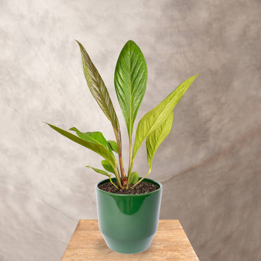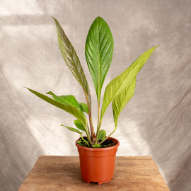 Anthurium Jenmanii to wyjątkowa, kolekcjonerska roślina o zachwycającej formie. Charakteryzuje się mięsistymi, sztywnymi liśćmi o osadzonymi na wydłużonych ogonkach liściowych, które z wiekiem przybierają coraz bardziej spektakularny kształt. Anturium lubi jasne, rozproszone światło i wysoką wilgotność powietrza. Idealna do uprawy w oranżeriach, witrynach lub po prostu jako efektowny akcent w domowej dżungli.