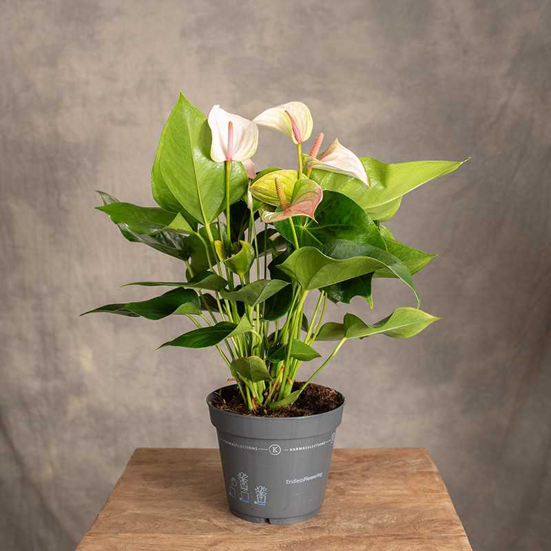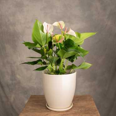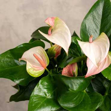 'Joli Pulse' to piękna odmiana anturium o fioletowo-różowo-białych pochwach kwiatowych w pastelowych odcieniach. Charakteryzują się one trwałością i wyglądają naprawdę imponująco. Są mięsiste, błyszczące jakby wytworzone z plastiku. Co więcej, można się cieszyć nimi niemal nieustannie, bo anturium kwitnie prawie przez cały rok.