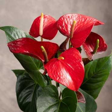 Anturium 'Red Bull' to efektowna roślina doniczkowa, która przyciąga uwagę swoimi intensywnie czerwonymi kwiatami i lśniącymi, sercowatymi liśćmi. Jest to odmiana anturium, która charakteryzuje się wyjątkowo dużymi, trwałymi kwiatostanami w jaskrawych odcieniach czerwieni, co nadaje jej niezwykle dekoracyjny wygląd.