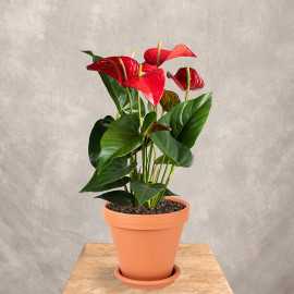 Anturium pochodzi z tropikalnych lasów Ameryki Środkowej i jest doskonałym przykładem rośliny pokojowej przeniesionej z tropików i zaadoptowanej dzięki systematycznej uprawie. Została odkryta w połowie ubiegłego wieku. Liście ma owalne i spiczasto zakończone, wyrasta z nich podłużna kolba. W odpowiednich anturium warunkach może kwitnąć przez cały rok.