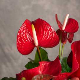 Anturium 'Red Bull' to efektowna roślina doniczkowa, która przyciąga uwagę swoimi intensywnie czerwonymi kwiatami i lśniącymi, sercowatymi liśćmi. Jest to odmiana anturium, która charakteryzuje się wyjątkowo dużymi, trwałymi kwiatostanami w jaskrawych odcieniach czerwieni, co nadaje jej niezwykle dekoracyjny wygląd.