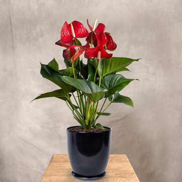 Anturium pochodzi z tropikalnych lasów Ameryki Środkowej i jest doskonałym przykładem rośliny pokojowej przeniesionej z tropików i zaadoptowanej dzięki systematycznej uprawie. Została odkryta w połowie ubiegłego wieku. Liście ma owalne i spiczasto zakończone, wyrasta z nich podłużna kolba. W odpowiednich anturium warunkach może kwitnąć przez cały rok.