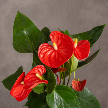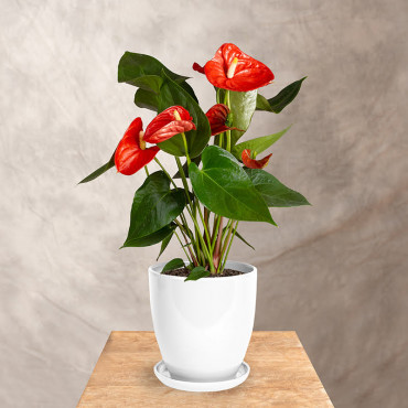 Anturium pochodzi z tropikalnych lasów Ameryki Środkowej i jest doskonałym przykładem rośliny pokojowej przeniesionej z tropików i zaadoptowanej dzięki systematycznej uprawie. Została odkryta w połowie ubiegłego wieku. Liście ma owalne i spiczasto zakończone, wyrasta z nich podłużna kolba. W odpowiednich anturium warunkach może kwitnąć przez cały rok.