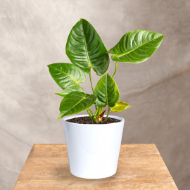 Anturium veitchii, nazywane również "Królewskim Anturium", to jedna z najbardziej spektakularnych i poszukiwanych roślin kolekcjonerskich. Jego ogromne, długie liście o ciekawej fakturze przypominają falującą tkaninę, nadając mu majestatyczny wygląd. To prawdziwa perełka wśród miłośników egzotycznych roślin!