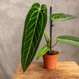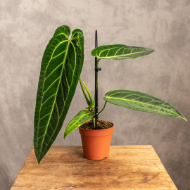 Anthurium warocqueanum, znane też jako „Queen Anthurium”, to prawdziwa królowa wśród roślin tropikalnych. Zachwyca długimi, aksamitnymi liśćmi o głębokim, butelkowozielonym kolorze i wyraźnym, srebrzystym unerwieniu. Dojrzałe liście mogą osiągać nawet ponad metr długości, tworząc spektakularny, królewski efekt, który czyni tę roślinę marzeniem każdego kolekcjonera.