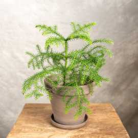 Araukaria to wolno rosnące, zimozielone drzewo, w naturze dorastają nawet do 65 m, we wnętrzach rośliny pozostają niewielkie. Wyróżnia się regularnym pokrojem, gałęzie wyrastają w symetrycznych okółkach. Nazwa gatunkowa heterophylla oznacza dokładnie “Różne Liście” odnosi się do zupełnie innego wyglądu liści u egzemplarzy dorosłych, przypominających łuski lub liście sukulentów.