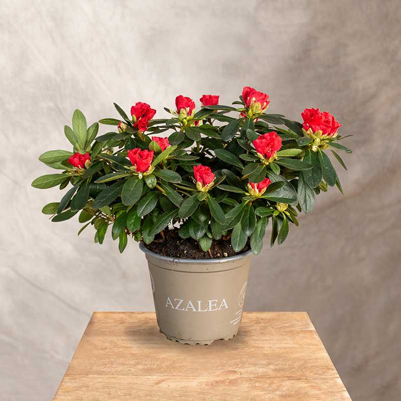 Azalia to rodzaj liczący ok 800 gatunków. Ma zdrewniałe pędy, a liście małe, skórzaste i eliptyczne. Odmiany azalii różnią się przede wszystkim kolorem, liczbą płatków oraz wielkością kwiatów. Oferowana roślina jest poprowadzona na pniu, a jej kwiaty są w kolorze czerwonym.