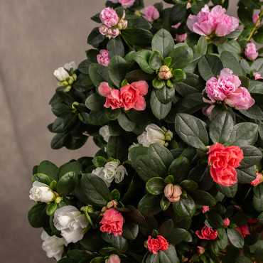 Nie stosujemy cięcia. Jedynie usuwamy suche gałązki i nadmierne wyciągnięte gałązki. Różaneczniki nie znoszą przeciągów i nabłyszczania ! Od połowy maja azalie można wystawić na osłonięte miejsce na np. na balkonie lub posadzić razem z doniczką w ogrodzie. Sprzyja to długowieczności rośliny. W końcu września zabieramy roślinę do domu, zapewniając jej początkowo temperaturę nie przekraczającą 10 °C. Po zabarwieniu się pierwszych pąków (po około 6 tygodniach) przenosimy roślinę w cieplejsze miejsce i zapewniamy jej wysoką wilgotność powietrza.*Azalię rozmnaża się z sadzonek wierzchołkowych, ale należy to pozostawić specjalistom. Azalie nie są zbyt łatwe w uprawie, ale warto poświęcić im czas i uwagę, a pięknie zakwitną.