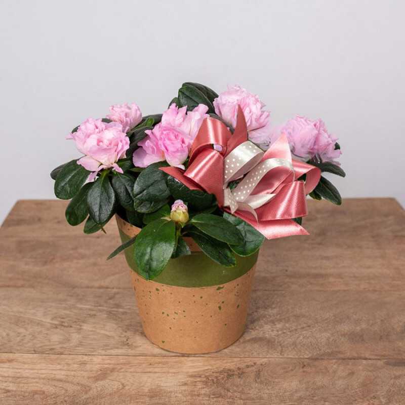 Azalia z przybraniem to idealny prezent na każdą okazję. Dostępna w kolorze różowym, białym lub koralowym.