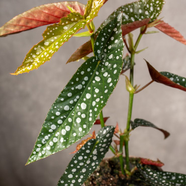 Begonia 'Wightii' inaczej nazywania też 'Begonia koralowa'/ 'Begonia plamista' to efektowna roślina doniczkowa z Brazylii, słynąca z podłużnych, oliwkowozielonych liści w srebrne kropki, z bordowym spodem. Osiąga 30-60 cm wysokości, rośnie szybko, a wiosną kwitnie na różowo lub biało. Wymaga jasnego stanowiska, bez ostrego słońca oraz wysokiej wilgotności powietrza.