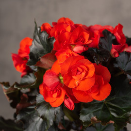 Begonia zimowa jest mieszańcem dwóch gatunków: Begonia socotrana × Begonia × tuberhybrida. To wdzięczna roślina doniczkowa doskonale nadającą się do uprawy w warunkach pokojowych. Wbrew polskiej nazwie, kwitnie właściwie przez cały rok. Bogactwo odmian i szeroką paletę barw zawdzięczamy hodowcy Ottonowi Riegerowi, pochodzącemu z Nuerfingen. Liście są duże, jędrne, błyszczące o różnych odcieniach zieleni. Kwiaty pojedyncze, półpełne, pełne o płatkach gładkich i powcinanych, różnej wielkości, jednobarwne i wielobarwne. Begonia elatior nie tworzy bulw tylko włókniste korzenie.