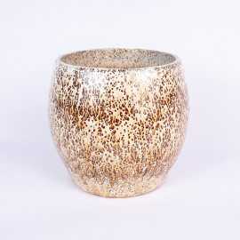 Osłonka ceramiczna w kolorze pomarańczowym, z widocznym wzorem w ciemnieszym odcieniu Nie posiada otworu, dlatego przy przesadzeniu roślin należy pamiętać o warstwie drenażowej np. keramzyt bądź umieścić roślinę w doniczce produkcyjnej.