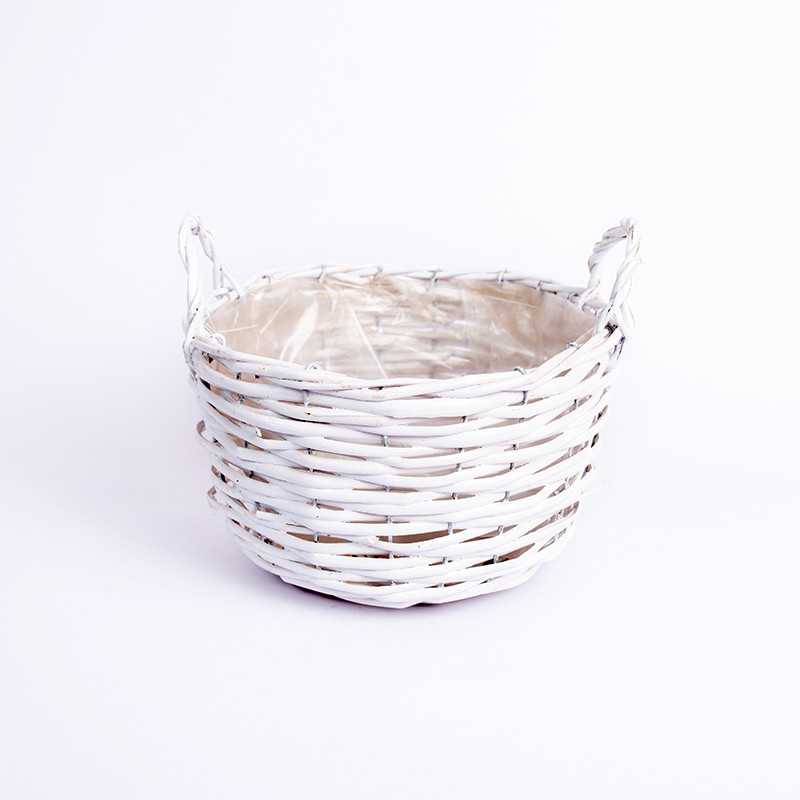 Kosz przeplatany w białym odcieniu. W środku posiada folie zabezpieczającą przez zabrudzeniem czy zalaniem.