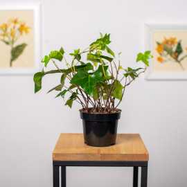 Losowa odmiana Bluszczu pospolitego ( Hedera ) to zawsze zielone pnącze, które przy pomocy czepnych korzeni zdolne jest piąć się nawet po pionowej ścianie. Ma skórzaste liście i baldaszki żółtozielonych kwiatów, które przeważnie pojawiają się dopiero późną jesienią i zawiązują niebiesko-czarne jagody wielkości grochu. Rodzaj Hedera obejmuje 7 gatunków, jest rozpowszechniony w Europie, na Wyspach Kanaryjskich, we wschodniej Afryce i Azji. Bluszcz pospolity jest zadomowiony w lasach Europy i Azji, przede wszystkim na glebach bogatych w wapń.