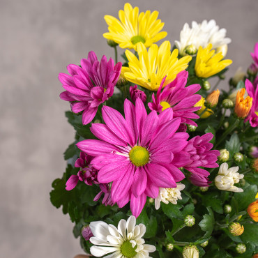 Chryzantema ( Złocień ) to wieloletnia roślina z rodziny Astrowatych. W Japonii jest to kwiat narodowy. Ich pokrój jest wzniesiony i krzaczasty. Znakiem rozpoznawczym tych roślin są bardzo charakterystyczne, pierzasto powcinane liście. W zależności od gatunku, kwiaty chryzantem mogą różnić się zarówno wielkością, jak i kształtem oraz kolorem. Występują kwiatostany kuliste, półkuliste, parasolowate, igiełkowe czy pomponowe. Chryzantema znalazła się również w badaniach Clean Air Study prowadzoną przez NASA, uznaję się ją za roślinę oczyszczającą powietrze.