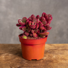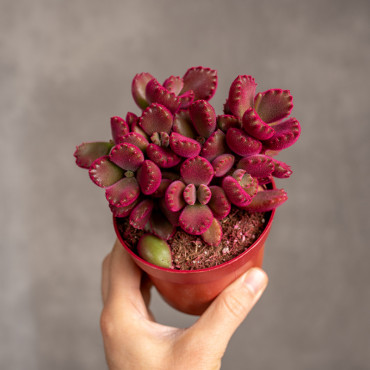 Cotyledon ladismithiensis z serii Make-upz to wyjątkowy sukulent o charakterystycznych, mięsistych liściach pokrytych delikatnym meszkiem. Ma czerwono- różowe zabarwienie, co nadaje roślinie niepowtarzalny, „muśnięty makijażem” wygląd – stąd nazwa serii Make-upz.
