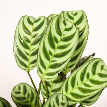 Ctenanthe 'Fishbone' to roślina tropikalna o niezwykle ozdobnych liściach wzniesionych na długich ogonkach liściowych. Blaszka liściowa jest w kolorze jasnej zieleni z ciekawym wzorem przypominającym rybi szkielet.