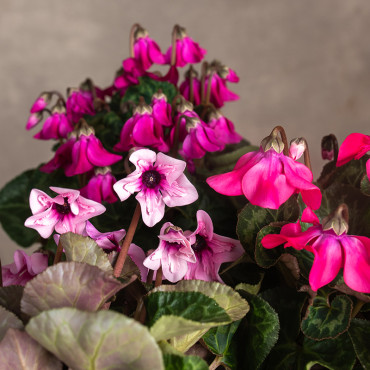 Cyklamen 'Petticoat' to niezwykle urokliwa odmiana o charakterystycznych, fantazyjnych kwiatach przypominających kształtem rozkloszowane spódniczki. Ich delikatne, intensywnie wybarwione płatki pięknie kontrastują z sercowatymi liśćmi ozdobionymi srebrzystymi wzorami. Dzięki kompaktowej formie i długiemu kwitnieniu stanowi wyjątkową ozdobę parapetów, stołów czy jesienno-zimowych aranżacji roślinnych.