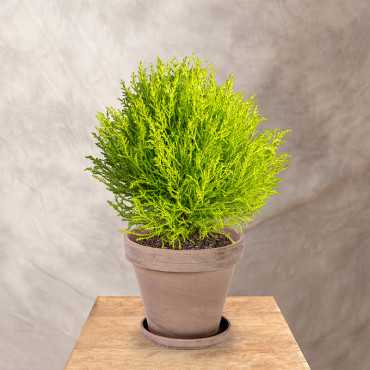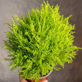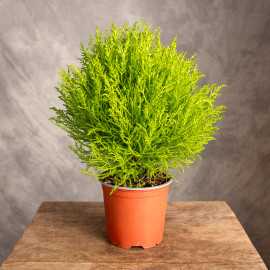 Cyprysik to świetna roślina do dekoracji z motywem świątecznym. Ma limonkowo-zielone gałązki, które wydzielają delikatny, cytrusowy zapach. W naszym klimacie uprawiany jest jako roślina doniczkowa, gdyż nie jest mrozoodporny.