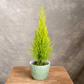 Cyprysik to świetna roślina do dekoracji z motywem świątecznym. Ma limonkowo-zielone gałązki, które wydzielają delikatny, cytrusowy zapach. W naszym klimacie uprawiany jest jako roślina doniczkowa, gdyż nie jest mrozoodporny.