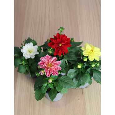 Wybierając ten produkt kupujesz 3 sztuki Dalii o losowym kolorze w doniczkach 14 cm średnicy.