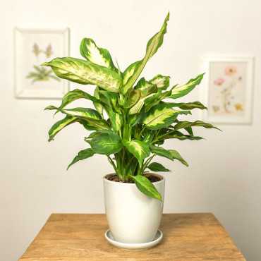 Difenbachia przybyła do Europy w XIX wieku z tropikalnych regionów Ameryki Południowej. Uwagę przyciągają dekoracyjne liście - duże, szerokie o charakterystycznym, oryginalnym, różnobarwnym rysunku. Roślina wymaga regularnej pielęgnacji, liście zawierają toksyczny sok mogący podrażnić skórę.