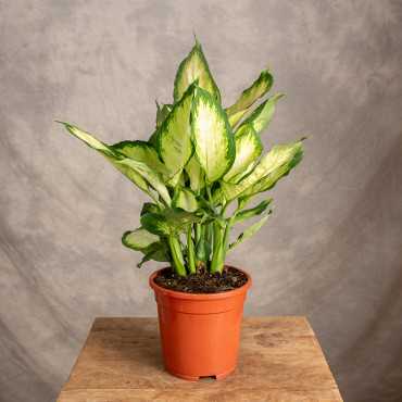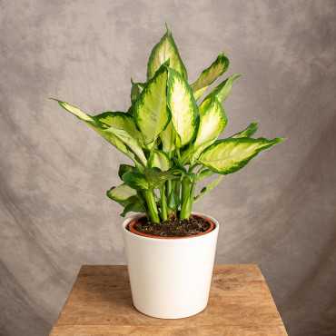 Difenbachia 'Chrystal White' to niezwykle dekoracyjna roślina o dużych, efektownych liściach, które zachwycają kontrastowym połączeniem intensywnej bieli i głębokiej zieleni. 'Chrystal White' jest idealna do rozświetlania wnętrz, doskonale sprawdzając się w salonach, biurach czy sypialniach. Preferuje jasne, rozproszone światło, ale dobrze radzi sobie także w półcieniu.
