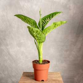 Difenbachia przybyła do Europy w XIX wieku z tropikalnych regionów Ameryki Południowej. Uwagę przyciągają dekoracyjne liście - duże, szerokie o charakterystycznym, oryginalnym, różnobarwnym rysunku. Roślina wymaga regularnej pielęgnacji, liście zawierają toksyczny sok mogący podrażnić skórę.